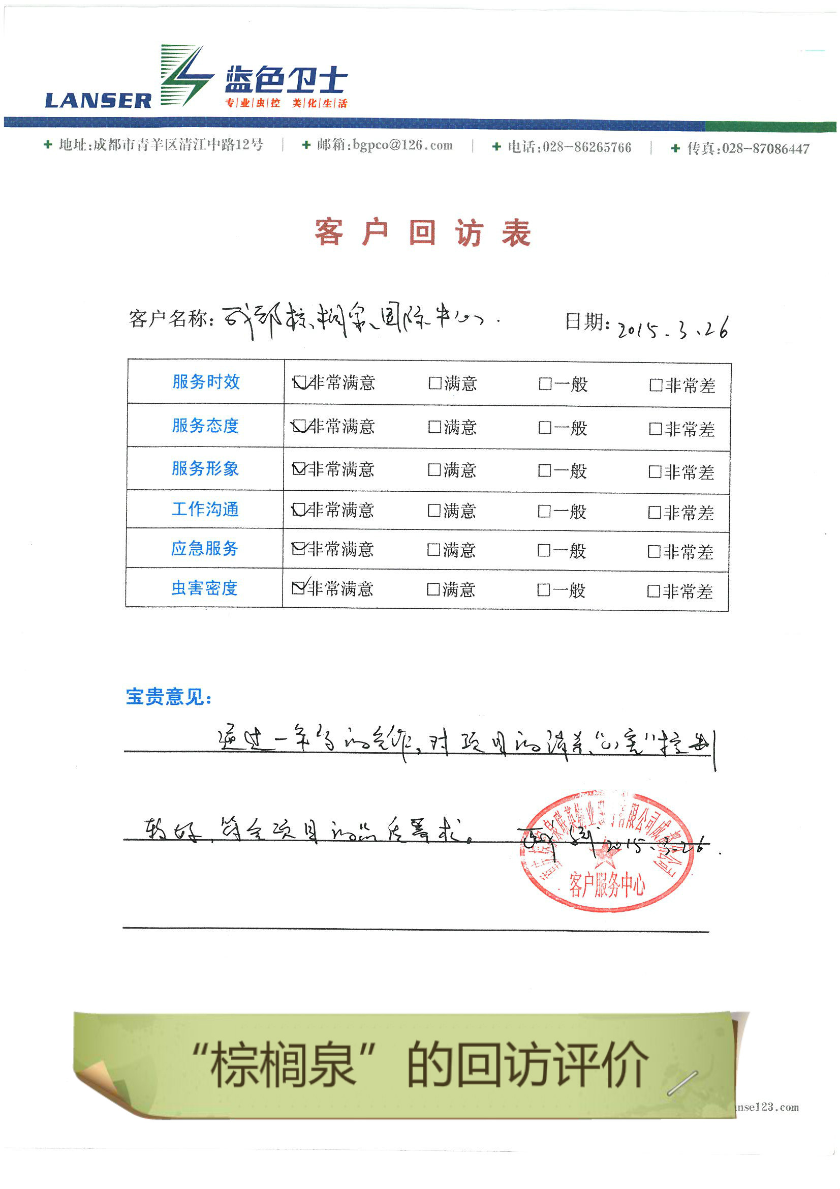 棕櫚泉的回訪(fǎng)評價(jià)