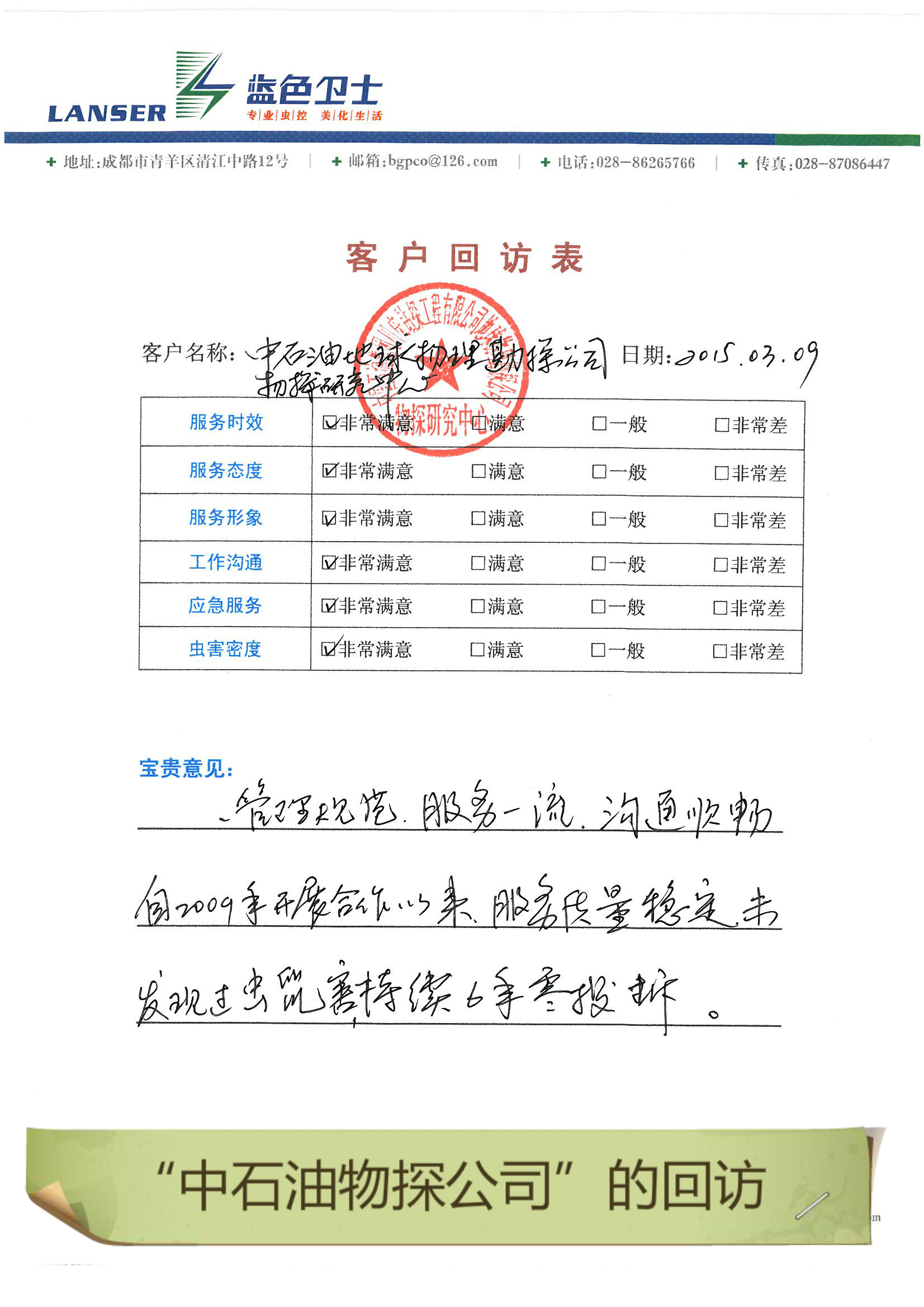中石油物探公司的回訪(fǎng)評價(jià)